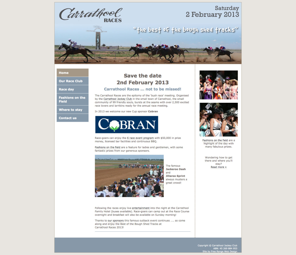 The epitomy of a bush race meeting, the Carrathool Jockey Club needed a website to help spread the word about its annual races.