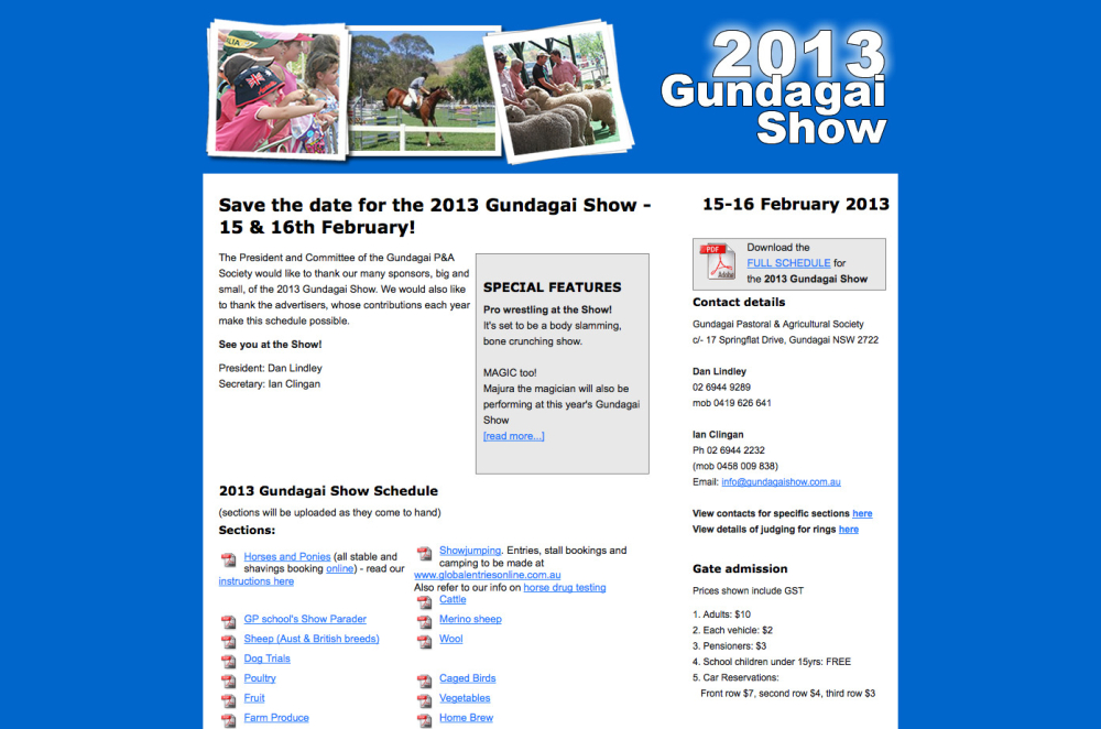 Renowned for its strong ring events and showjumping, the Gundagai P & A Society wanted a simple site for people to easily access the show schedule.