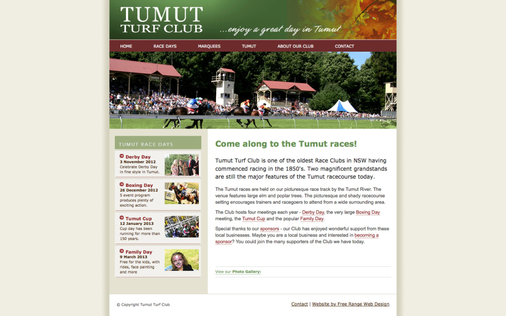 The Tumut Turf Club hosts 4 big meetings a year (including “the big one” on Boxing Day!) and wanted a website to provide information to racegoers and visitors to the town.